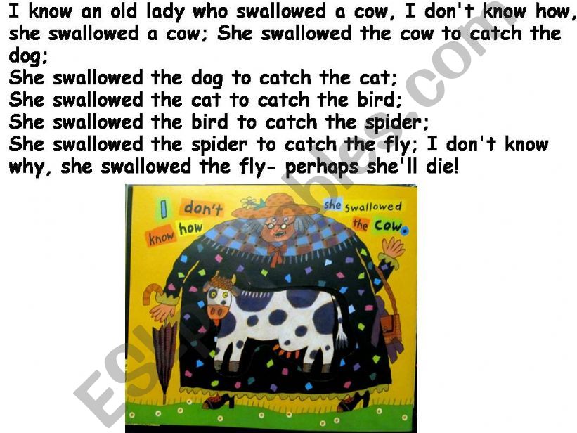 Esl English Powerpoints There Was An Old Lady Who Swallowed A Fly